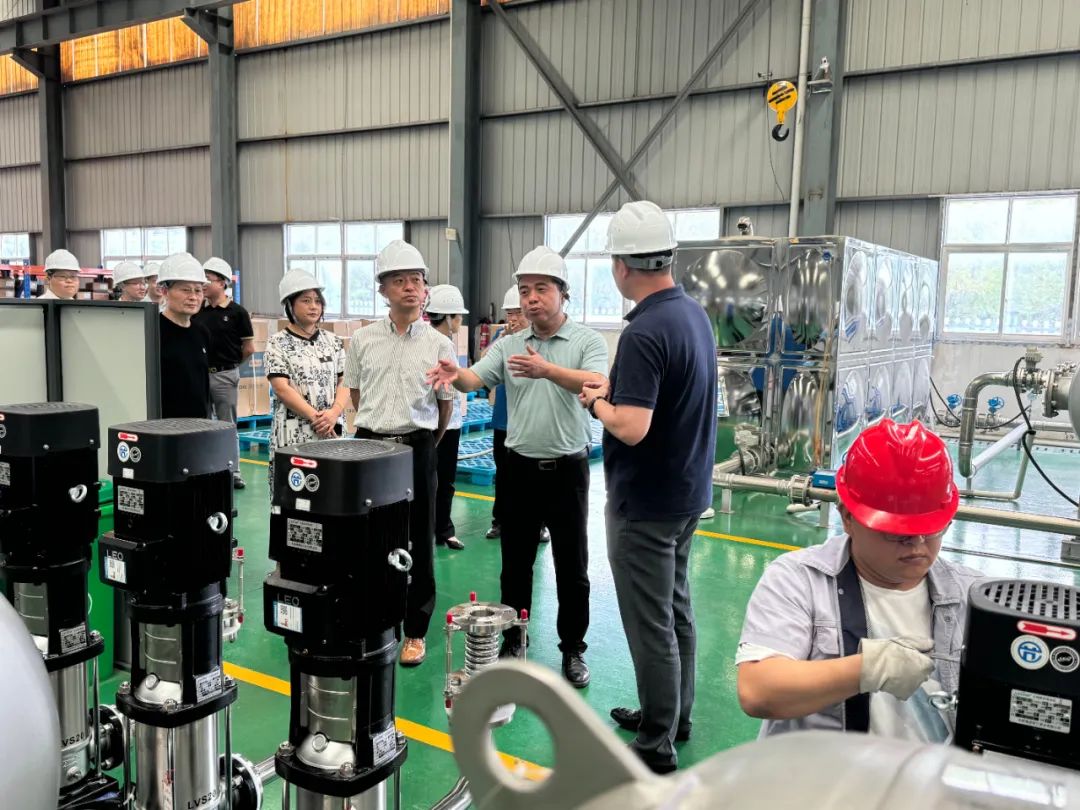 謝局長(zhǎng)一行依次參觀了我司的機(jī)械生產(chǎn)車(chē)間、電器車(chē)間、成品倉(cāng)、二次供水設(shè)備展廳,我司總經(jīng)理陳科宇詳細(xì)介紹了二次供水設(shè)備系統(tǒng)性的生產(chǎn)流程、工藝特點(diǎn)與優(yōu)勢(shì)以及目前的發(fā)展情況。