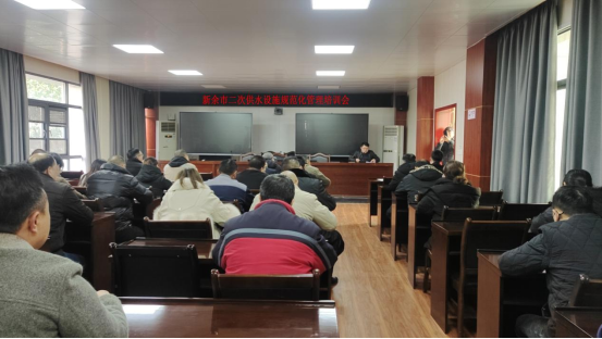 為進一步落實市委市政府關于創(chuàng)建國家衛(wèi)生城市工作的總體部署要求,切實提高我市生活飲用水管理水平,1月5日新余市水利局邀我司聯(lián)合開展了城區(qū)二次供水設施規(guī)范化管理培訓會。此次培訓會由市水利局二級調研員胡振南主持,我司業(yè)務部李正明與技術部伍松代表授課,參會人員有新余市內各學校、醫(yī)院、酒店、賓館以及小區(qū)物業(yè)等負責人。