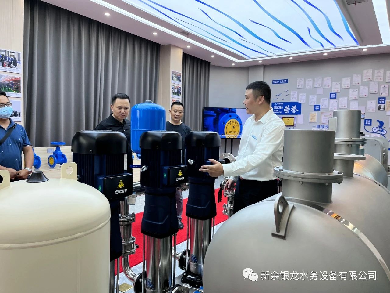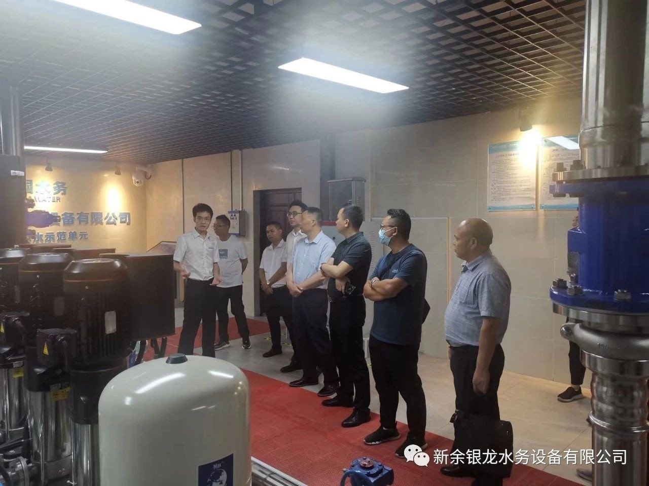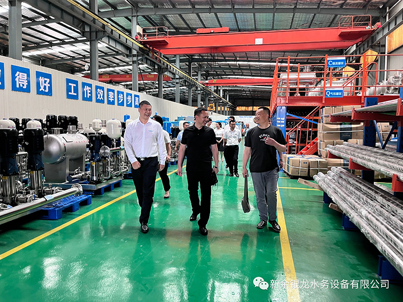 目前我司與懷化新晃已達成戰(zhàn)略合作,6月21日下午,新晃縣城市管理和綜合執(zhí)法局黨組書記、局長黃超及懷化銀龍水務(wù)有限公司總經(jīng)理姚曉明一行六人蒞臨我司實地考察,參觀交流并指導(dǎo)工作。黃局一行在我司總經(jīng)理陳科宇等公司領(lǐng)導(dǎo)的陪同下,先后參觀了公司機械生產(chǎn)車間、二次供水設(shè)備展廳、二次供水監(jiān)控管理平臺及新余市城北商務(wù)廣場標準化泵房示范單元。